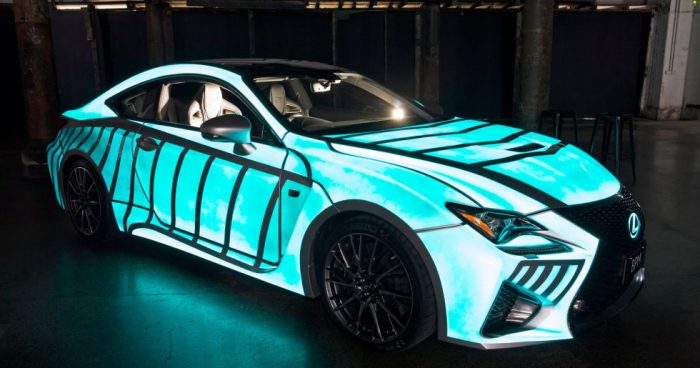 ¿A la carrocería? Sí, porque esta unidad tiene los paneles exteriores cubiertos con pintura electroiluminescente, así que reacciona a los impulsos eléctricos para encenderse o apagarse. De esta manera se traslada en tiempo real las pulsaciones del conductor a los laterales de la carrocería.