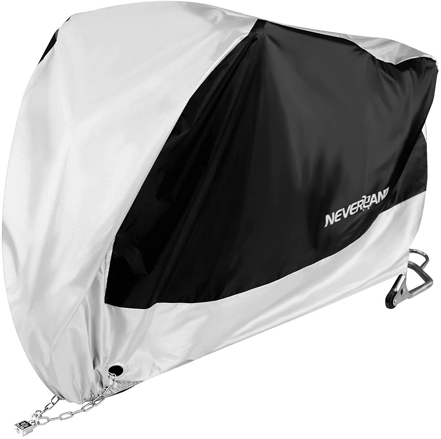 Es de plástico 100% impermeable. La cubierta para motos, está concebida para asegurar la protección contra la intemperie, rayones, la suciedad, el sol, etc. Es fácil de plegar y llevar con la bolsa de guardado.