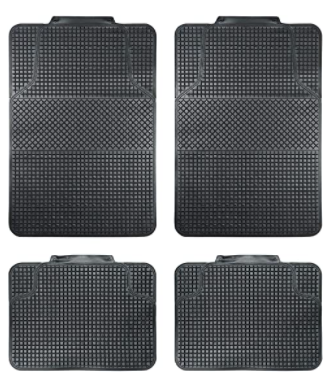 La alfombra para coche es universal, de goma y de color negro. Son antideslizantes y sus medidas son de 65 x 45 cm y 33 x 45 cm. El envío es gratis.