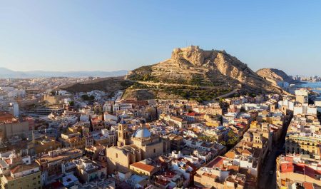 Vista aérea de la ciudad de Alicante con el castillo al fondo. | Getty Images