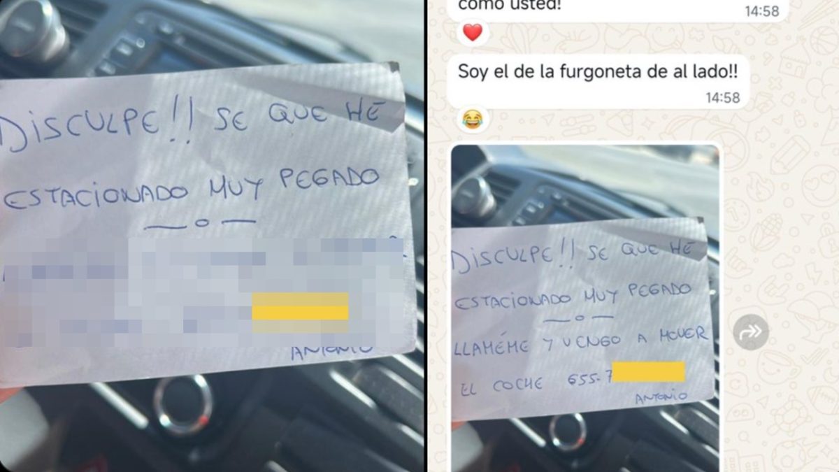Si generalmente las historias de coches aparcados son conflictivas, la siguiente no tiene nada de eso. De hecho, al contrario: “Disculpe!! Sé que he estacionado muy pegado. Llámeme y vengo a mover el coche. Antonio”, dice la nota en la que el hombre agrega su número telefónico.
