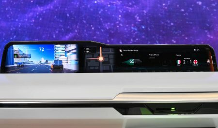 Al extenderse desde el asiento del conductor hasta el del acompañante, es capaz de mostrar una gran variedad de contenidos, entre los que se incluyen diversas informaciones sobre la conducción y la navegación, así como música y vídeos.
