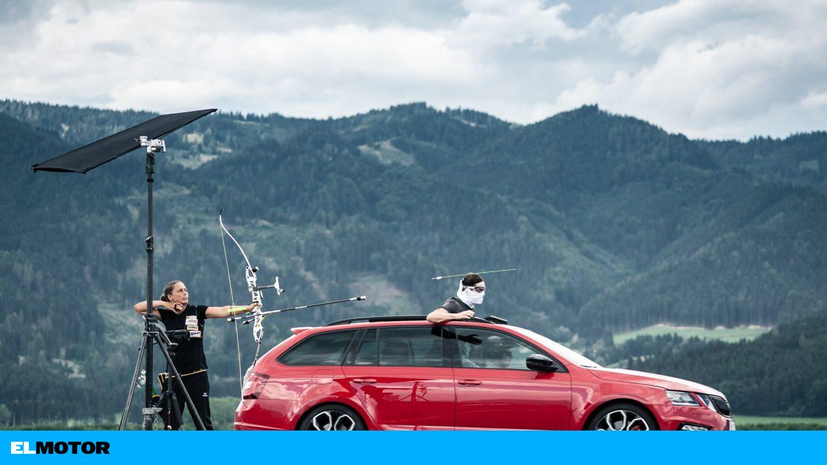 La marca checa ha puesto a un instructor de artes marciales dentro de su Octavia Combi RS 245, asomado por el techo panorámico, con el objetivo de coger al vuelo una flecha lanzada por una arquera profesional. Y lo ha conseguido.