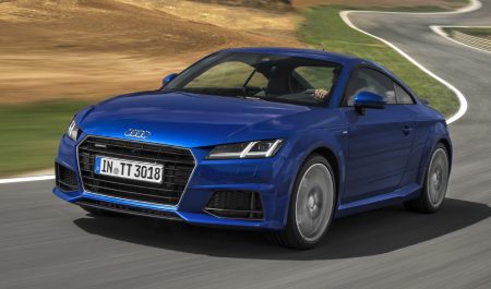 Con la carrocería cupé y dicha configuración el TT hace el 0-100 en 6,7 segundos, alcanza los 234 km/h de velocidad máxima y consume 5,2 l/100 km en ciclo mixto. La versión descapotable es algo más lenta: necesita 7,0 segundos para completar el 0-100 y llega solo a 230 km/h de punta. El consumo, por su parte, es algo mayor, 5,4 l/100 km.
