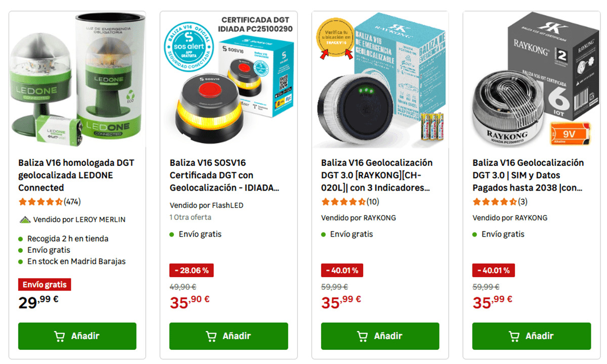 En tanto, en Leroy Merlin hay una opción interesante: una baliza V-16 a 29,99 euros. Pero, ¿está homologada? Sí. Basta con revisar el número de certificado y efectivamente aparece en la lista oficial de la DGT.