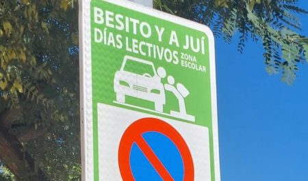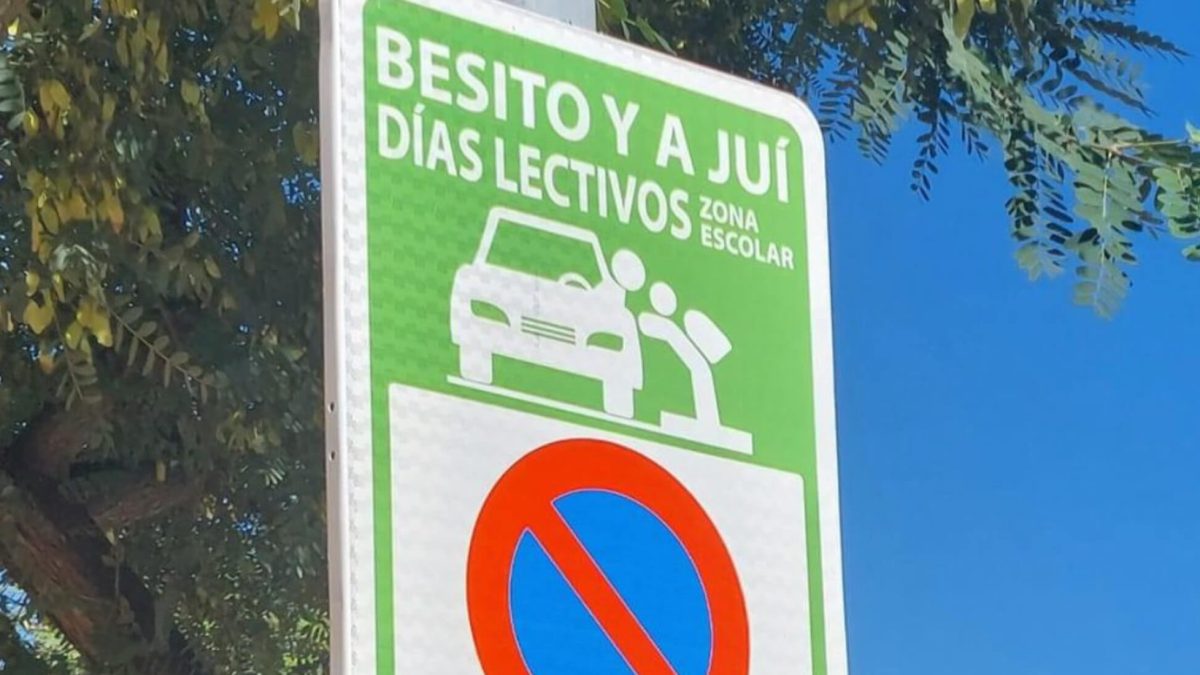 La petición está respaldada por la señal R-308 (circular con fondo azul, borde rojo y una línea diagonal del mismo tono) que anuncia la prohibición de aparcar. Añade, eso sí, una excepción para poder dejar y recoger a los niños: “Se autoriza a efectuar paradas de un minuto destinadas a la bajada y subida de escolares, en los horarios comprendidos entre las 08:45 y las 09:15 horas y las 13:45 y las 14:15 horas” en días lectivos.