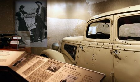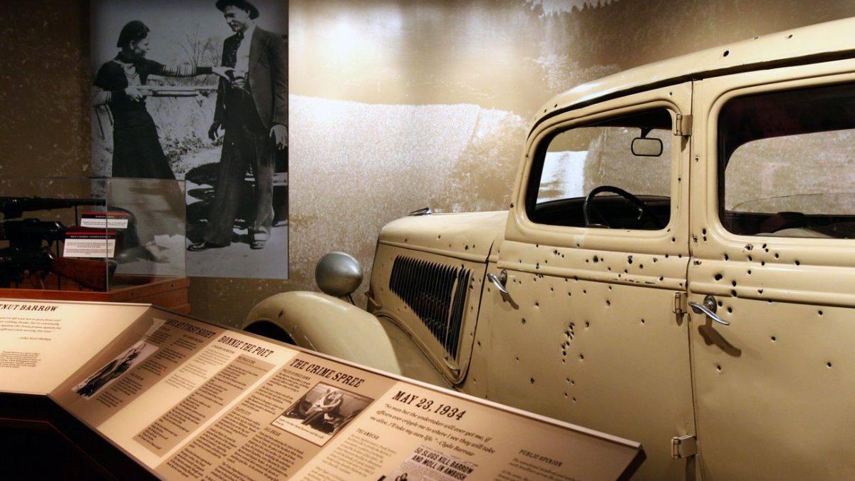 En su carrocería pueden contarse, todavía, los 167 orificios de bala cuyos proyectiles terminaron con la vida de la pareja criminal más famosa de la historia.