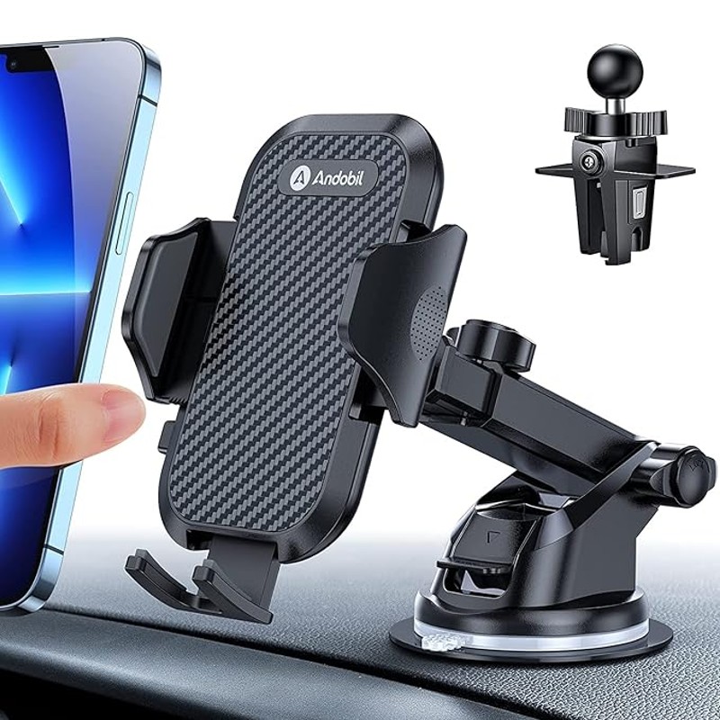 Soporte teléfono móvil para el coche. Un soporte de calidad que se pueda instalar fácilmente en el automóvil para mantener el teléfono seguro mientras se conduce. También es posible encontrar modelos con características adicionales, como la carga inalámbrica.