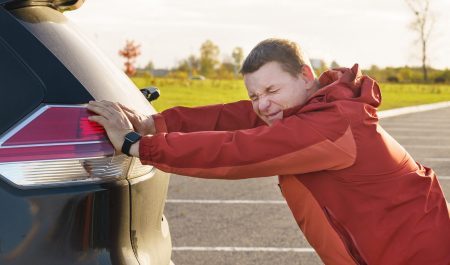 Entonces, ¿cuál es la manera correcta de actuar? Lo ideal sería que alguien empujase el coche mientras otra persona controla la dirección y el freno desde el puesto de conducción. Sin embargo, si ocurre estando solo, es inviable.