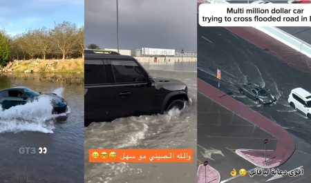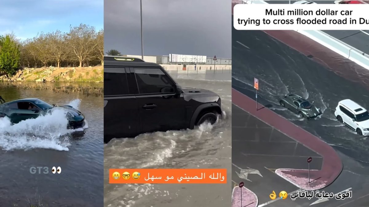 Emiratos Árabes es sinónimo de riqueza y sus coches lo reflejan a la perfección: superdeportivos y modelos de alta gama circulan a menudo por sus calles. Por lo mismo, las redes sociales muestran los incontables vídeos de los modelos de lujo flotando o intentando cruzar entre los profundos charcos.