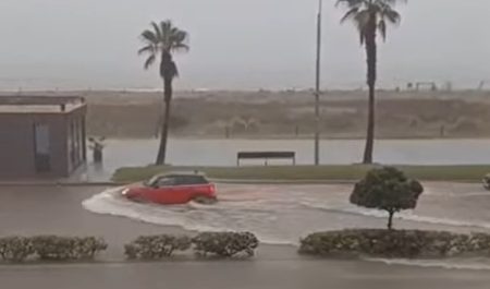 Para estos conductores, la alerta roja en Cataluña no fue un impedimento para ponerse al volante. En las siguientes imágenes se ve a los automóviles circulando por el paseo marítimo de Gavá con el agua por encima de los neumáticos.