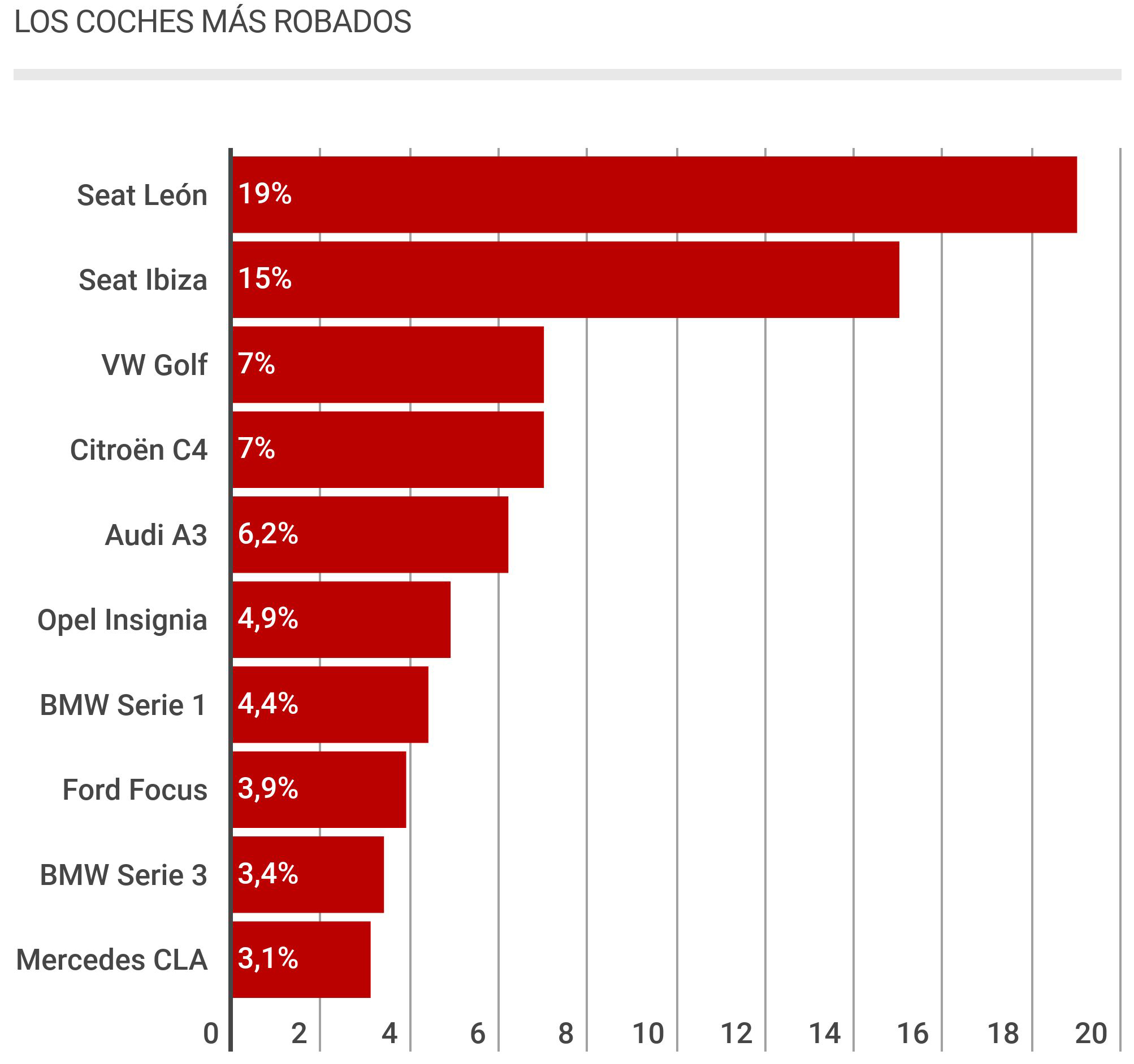 Un Seat Ibiza, un Seat León, un Volkswagen Golf o un Citroën C4 son para disfrutar y para preocuparse. Sin exagerar pero sin descuidos, porque resulta que son los coches más robados en España, por ese orden y con notable diferencia de los dos primeros sobre el resto. Las precauciones que se tomen para defenderlos del hurto han de ser siempre las máximas.