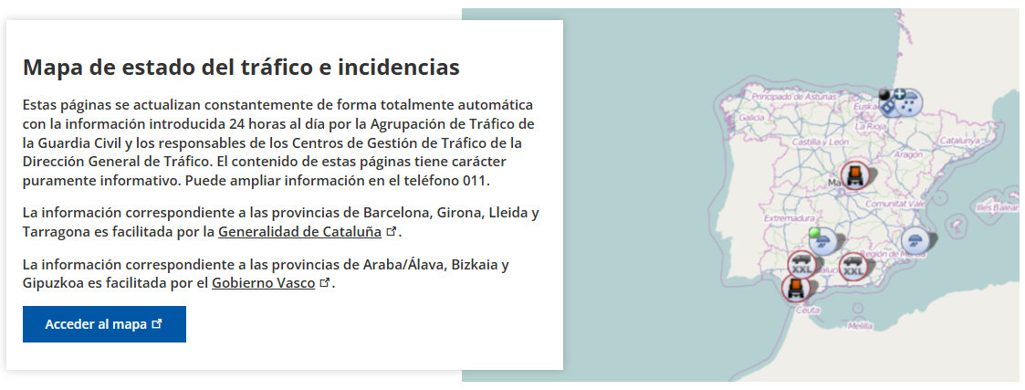 ¿Cómo se puede conocer, entonces, el estado de la carreteras si no funcionan las pantallas de la DGT? Simplemente (si tiene conexión, claro está), habrá que acceder a los mapas interactivos de tráfico.
