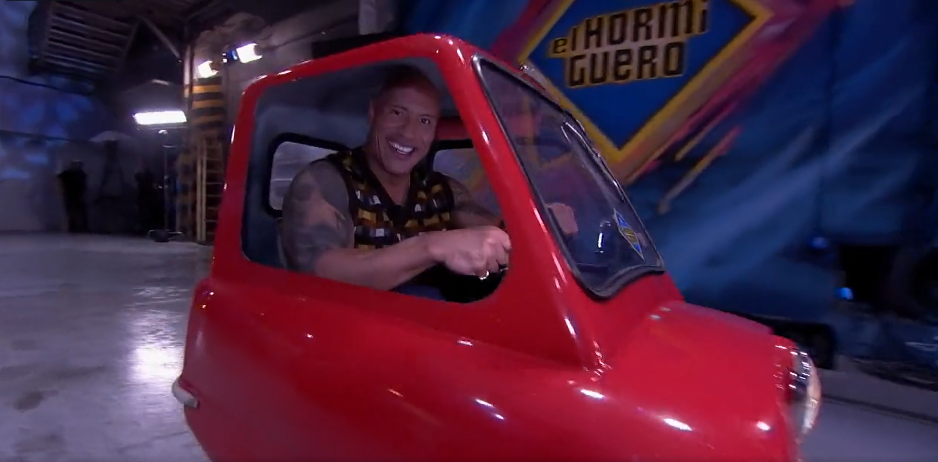 🚘 El gran @TheRock se sube en el coche más pequeño del mundo #DwayneEH pic.twitter.com/FFEiXz6e5z