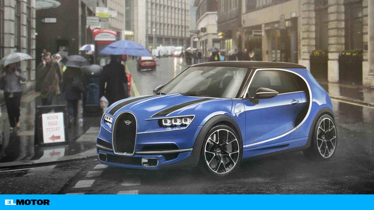 Una suerte de Chiron en miniatura, combinando de manera acertada rasgos del Bugatti (parrilla, la ‘C’ trasera, los faros) con las proporciones y estructuras del Mini. Vía Budget Direct