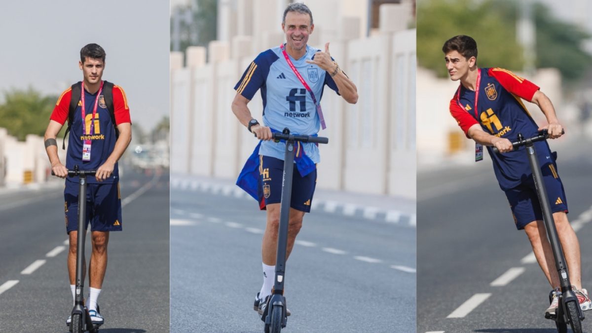 Los internacionales españoles utilizan el patinete, con una velocidad máxima de 20 km/h, para moverse en el día a día. Principalmente, desde su concentración en la Universidad de Qatar hasta los campos de entrenamiento.
