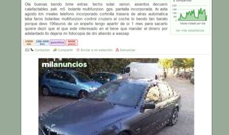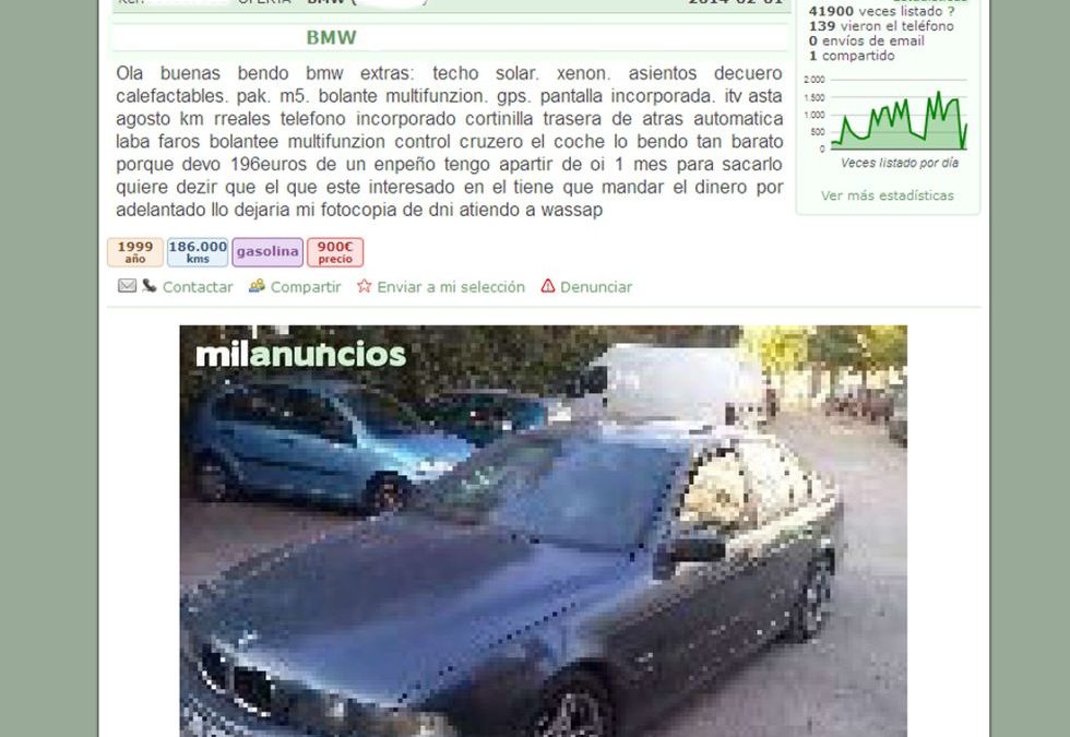 – Una redacción poco cuidada, la abundancia de faltas de ortografía y la ausencia de detalles concretos del vehículo (kilometraje, potencia, año de fabricación, falta o no de libro de mantenimiento) te darán la voz de alarma sobre la falsedad del anuncio.