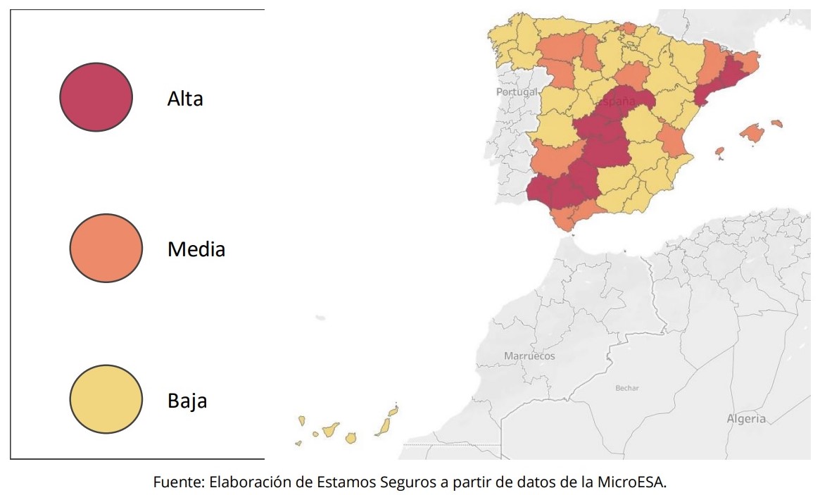El detalle facilitado por UNESPA desciende incluso a los distritos urbanos de las grandes ciudades, siendo algunos de los más castigados por los robos Entrevías y San Diego en Madrid; Montgat en Barcelona; Sestao en Bilbao; La Plata y Amate en Sevilla o Soternes y La Llum en Valencia.