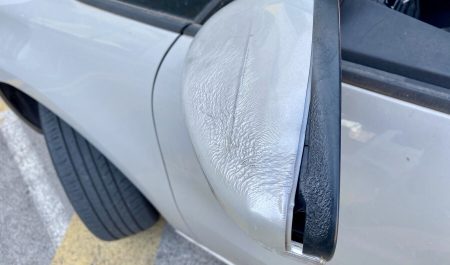 Hace solo unos pocos días se acercaba un conductor al taller con unos daños en el coche difíciles de creer. Y es que la carcasa del retrovisor y el revestimiento del pilar B se encontraban semiderretidos por el sol.