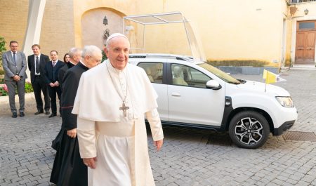 Ser el constructor del próximo ‘Papamóvil’ es un es un escaparate que toda marca querría para sí, algo que empuja a muchos fabricantes a regalar vehículos a su santidad. Si hace ya un tiempo fue Lamborghini la que obsequió al pontífice con un Huracán personalizado (que luego se subastó con fines benéficos), ahora ha sido Dacia la que le ha entregado su SUV low-cost superventas: el Duster.