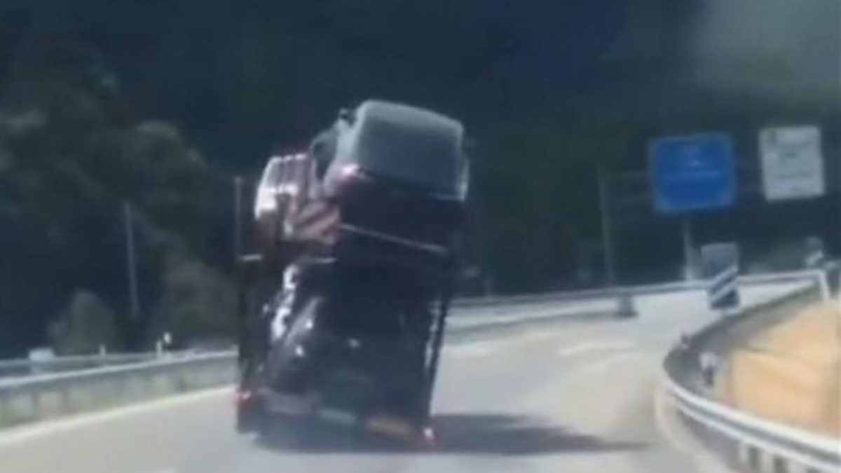 Las imágenes se han publicado este sábado en las redes sociales, y en ellas se aprecia a un camión portacoches avanzando por la vía con dificultad, moviéndose de un lado a otro de la calzada y ocupando los dos carriles en el sentido de su marcha.