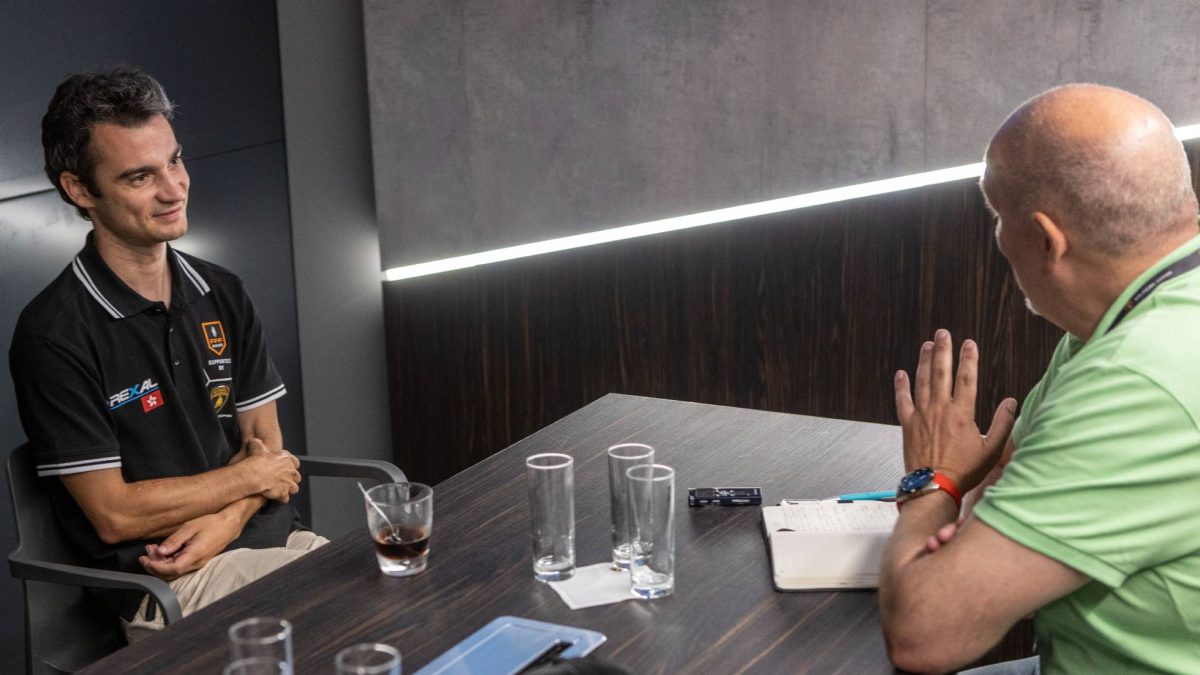 La charla tuvo lugar minutos antes de la Ronda 3 de la competición, en el circuito italiano de Misano. Cada fin de semana hay dos carreras (sábado y domingo), y dos son los pilotos que compiten con cada coche. El primer día, su compañero de equipo Antonin Borga se dio un toque con otro piloto y los dos acabaron fuera de la carrera en la vuelta en la que iba a entrar para ceder el coche a Pedrosa.