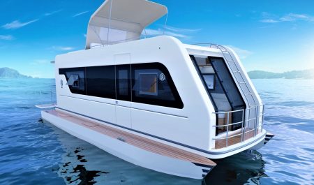 Se trata, básicamente, de un barco acoplado a un remolque del que puede tirar el coche. Así, mientras se desplaza por carretera, opera como una caravana normal; y al detenerse para pasar la noche, también.