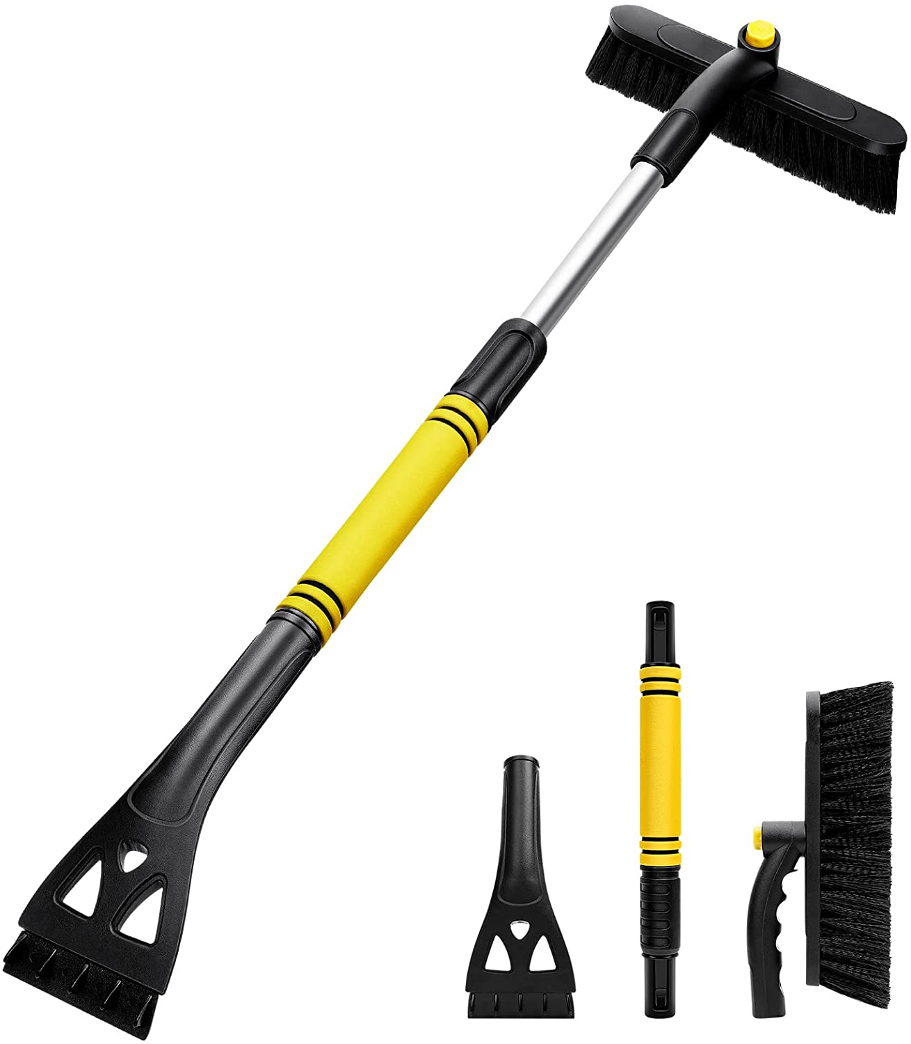 El bastón extensible incluye un cabezal giratorio de 360 grados. Se extiende de 73,5 a 89,5 centímetros para lograr una mayor distancia, con el objetivo de llegar cómodamente al centro del parabrisas o del techo. Además, el juego consta de tres partes: cepillo de nieve, rascador de hielo y varilla de aleación de aluminio.