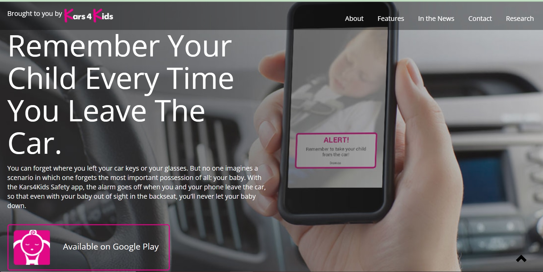 Kars4Kids. Esta app usa el Bluetooth para conectarse al smartphone haciendo sonar una alarma cuando abandonamos el coche y recuerda que se debe mirar hacia atrás antes de irnos. La hora de aviso es configurable y se puede desactivar si se viaja solo.