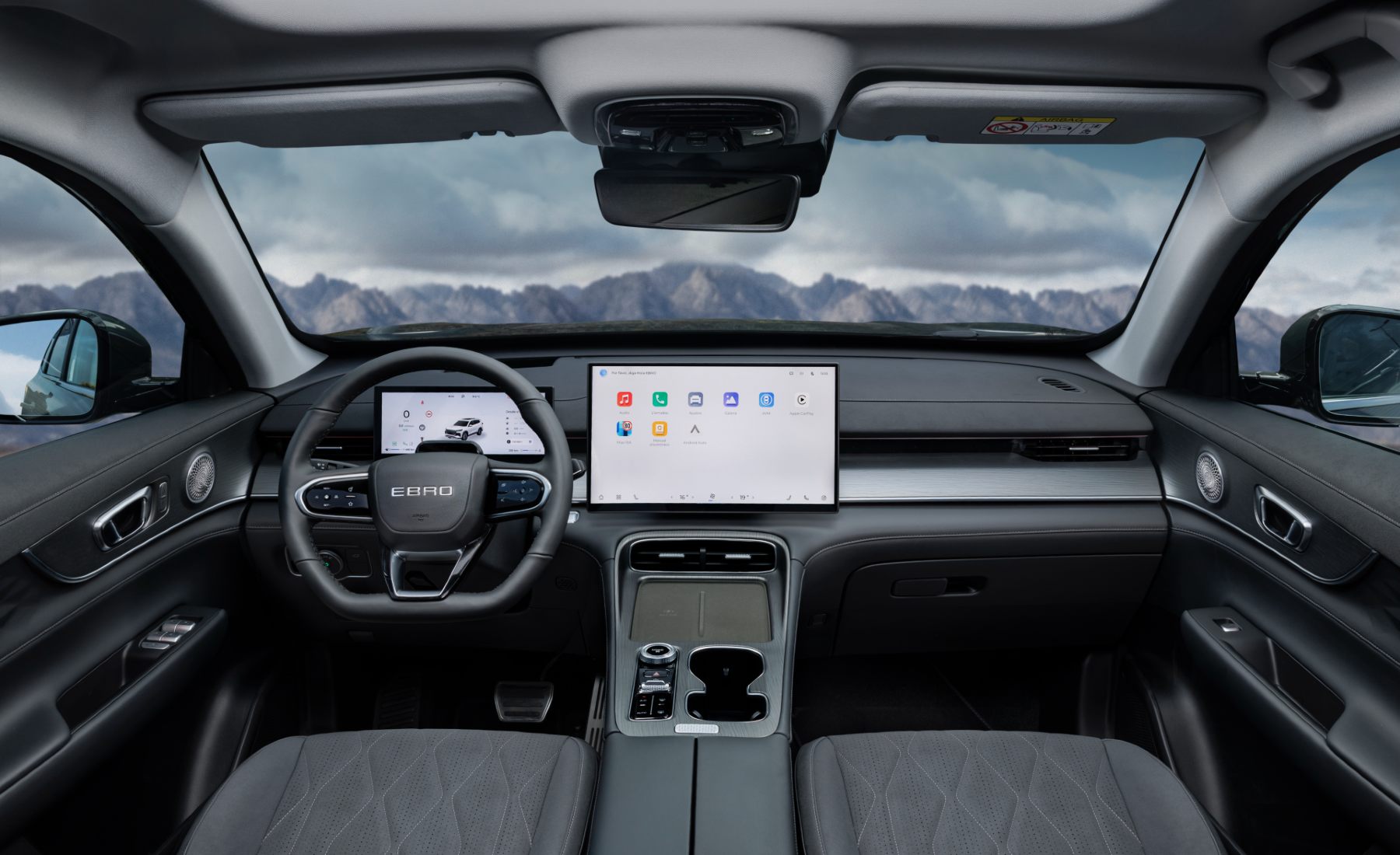En su interior, el Ebro S800 ofrece un habitáculo con un diseño minimalista y materiales de alta calidad. Monta una pantalla central de 15,6 pulgadas y una digital de instrumentación detrás del volante de 10,25 pulgadas. La iluminación ambiental personalizable y los asientos de cuero sintético con calefacción y ventilación garantizan un alto confort. Además, cuenta con un sistema de sonido Sony con hasta 12 altavoces en la versión Luxury.