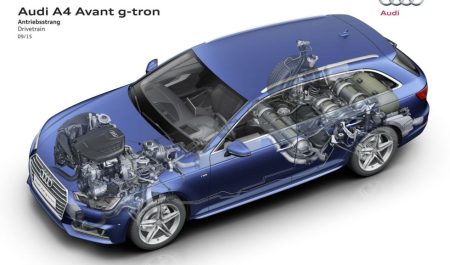 Audi homologa, según el ciclo NEDC un consumo de cuatro kilogramos de CNG (gas natural comprimido) a los 100 kilómetros, lo que se supone un coste de unos cuatro euros. El depósito tiene una capacidad de 19 kg, con los que alcanza una autonomía de unos 500 km. Cuando el contenido de gas en el depósito cae por debajo de 0,6 kilos la unidad de control cambia al funcionamiento en modo gasolina, con el que tiene otros 450 km de autonomía.