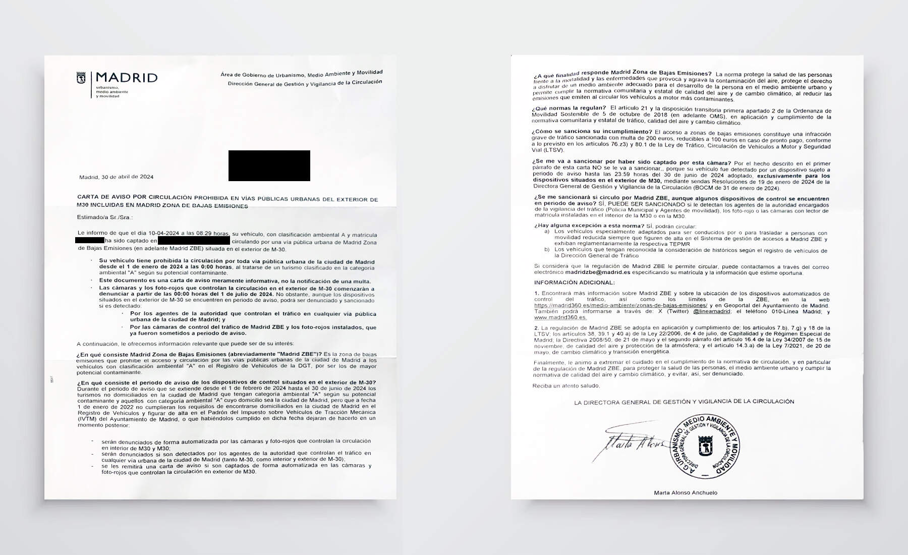 Desde marzo de 2022, esto se considera una infracción grave: de hecho, en 2023 se registraron más de medio millón de accesos prohibidos. Y el 50% de ellos se concentran en tan solo cinco calles. Debido a la ampliación de la Zona de Bajas Emisiones muchos conductores están recibiendo una carta en los últimos meses avisándoles de que están circulando en vías públicas urbanas del exterior de la M-30 sin el correspondiente permiso.