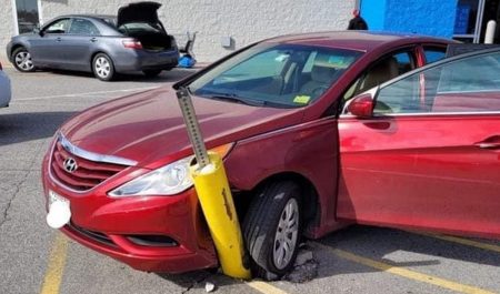 De acuerdo con el usuario de Reddit que ha publicado las imágenes, al menos 45 coches se han golpeado con el mismo poste una y otra vez. Desde todoterrenos hasta SUV, estos golpes se han producido en la explanada de un Walmart estadounidense, una de las mayores multinacionales de tiendas del país.