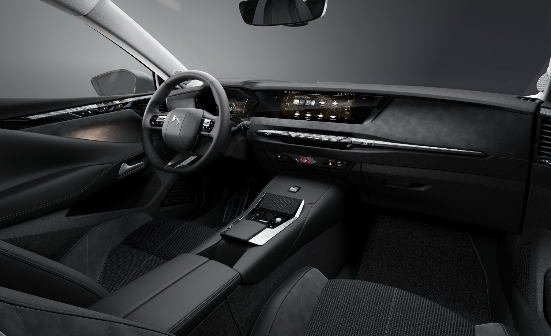 Su distancia entre ejes de 2,67 metros no solo garantiza una conducción dinámica sobre el asfalto, sino que permite optimizar el espacio interior y ofrecer un maletero líder en su clase con 430 litros de capacidad (en versiones térmicas), accesible mediante un portón motorizado con manos libres. La integración de los faros DS Matrix LED Vision, junto con las luces diurnas verticales, otorga al frontal un alto impacto visual, complementándose con tiradores de puertas escamoteables que mejoran la eficiencia aerodinámica.