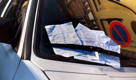 Multas en el retrovisor de un coche. | Getty