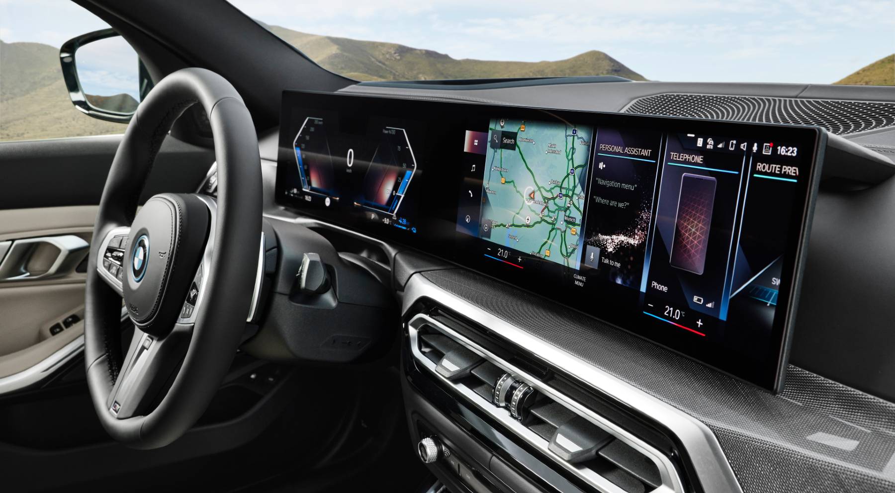 En el caso del interior, el nuevo BMW Serie 3 ha recibido una puesta al día integral, haciendo hincapié en el puesto del conductor. Pero lo que llama la atención por encima del resto es la gran pantalla curva de serie. Un sistema que fusiona la pantalla central de 14,9 pulgadas y el cuadro de instrumentos de 12,3 para crear una superficie homogénea totalmente digital y de alta resolución orientada hacia el conductor. Así mismo, se han reducido significativamente los botones físicos a favor del control táctil y de voz.