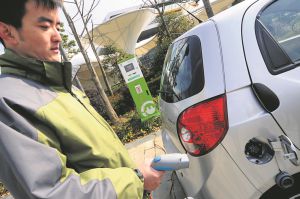 Punto de recarga para coches eléctricos en un barrio de Shanghái que ha comenzado a construir la infraestructura necesaria. / ZIGOR ALDAMA