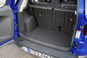 Al igual que otros 4×4 de bolsillo, el EcoSport puede cumplir como coche único para parejas jóvenes. Muestra un diseño más original que el Fiesta y completa sus argumentos con un interior y un maletero más amplios. Y añade la posición de conducción elevada de los todoterrenos. Su estética luce unas proporciones peculiares, con un frontal demasiado alto, y suma detalles poco comunes como la rueda de repuesto por fuera del portón, que aumenta la longitud hasta 4,23 metros. Sin ella mide 3,99 metros, como el Fiesta, aunque su mayor altura permite reposicionar los asientos y ganar espacio: puede alojar adultos atrás con más confort y ofrece un maletero superior: de 310 a 375 litros según la inclinación del respaldo (290 el Fiesta).
