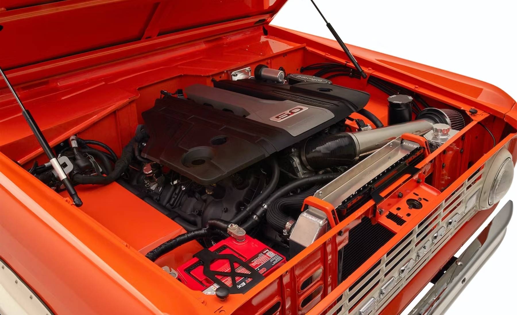 El motor es un Ford Coyote V8 de 5.0 litros que genera 465 CV, aunque la compañía está desarrollando un sistema de propulsión eléctrico que los clientes pueden pedir como opción alternativa. Este propulsor, sin emisiones, tiene el objetivo de ofrecer una autonomía eléctrica de unos 320 kilómetros.