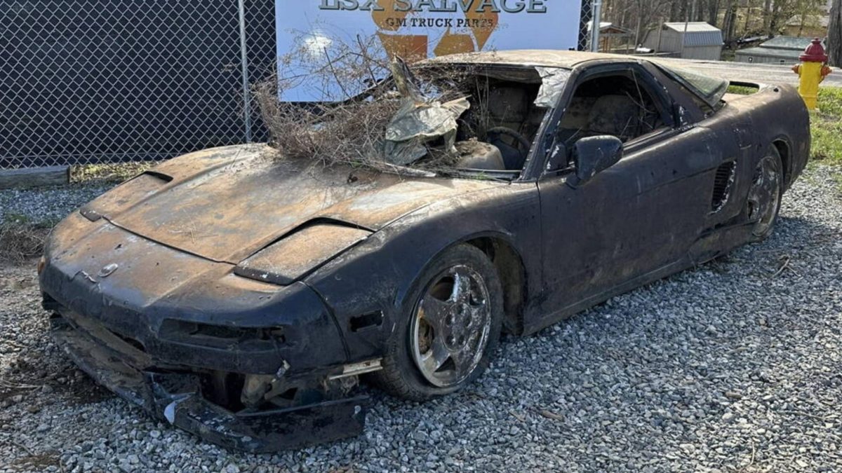 Este Acura NSX, que parece sacado de la serie de tanto éxito The Last of Us, solo tiene 62.800 kilómetros, pero ha pasado 20 años en el fondo de un río en Carolina del Norte (Estados Unidos).