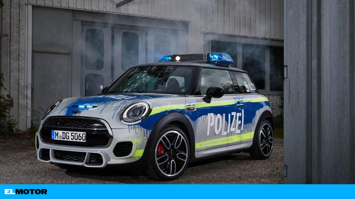 Lo ha hecho, no obstante, con un estilo de lo más particular. Por norma general se viste al vehículo con los colores de la policía alemana, respetando el diseño que utilizan los coches del cuerpo, pero el Mini de este año ha optado por una estética más urbana, como si hubiera sido pintado por un equipo de grafiteros con el gris brillante como base y los azules y amarillos como colores de contraste.
