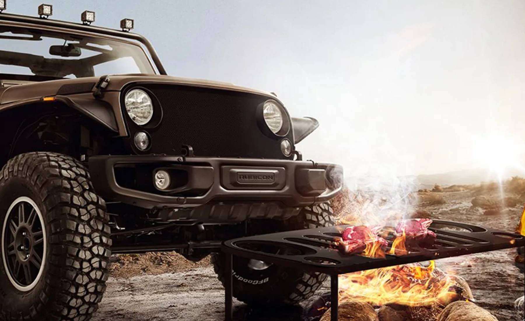 Las barbacoas son un clásico en los Estados Unidos y Jeep tuvo la idea, el año pasado, de juntar sus coches con esa tradicional forma de cocinar usando la supuesta parrilla desmontable del Wrangler. Podía extraerse del frontal para colocarla sobre el fuego.