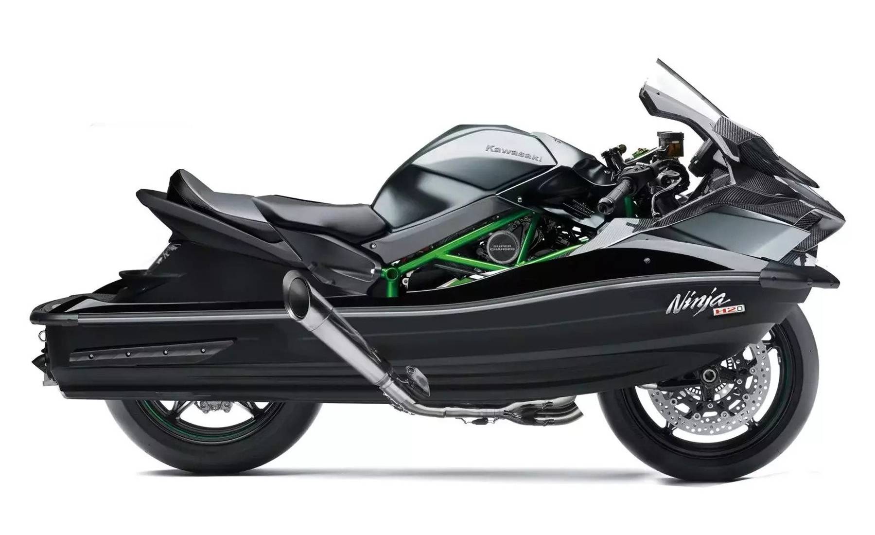 Juntar motos de dos mundos diferentes no es complicado si se sabe cómo. Kawasaki enseñó en 2021 la Ninja H20, la “primera hipermoto acuática del mundo”, que permitía pasar fácilmente del modo Carretera al modo Agua con sólo pulsar un botón.