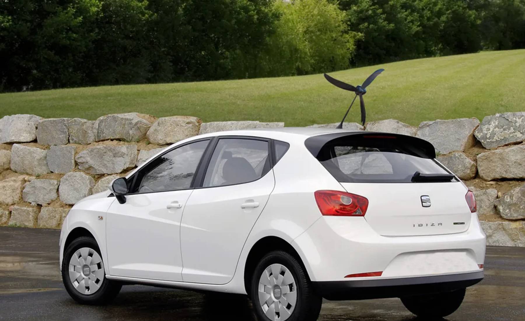 La marca española mostró en 2009 una versión especial del Ibiza movido por una fuente renovable. Para aprovechar la energía eólica, se ha había instalado un aerogenerador en el techo del coche.