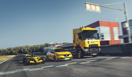 Esto queda patente a primera vista, ya que el camión luce los colores del equipo, con el amarillo como protagonista y numerosos elementos de contraste en negro brillante, tales como los retrovisores y la parrilla. De hecho la temática continúa en el habitáculo, donde hay diversas molduras amarillas en el salpicadero, así como una placa que reza ‘Renault Sport Racing’, asientos Recaro y hasta acabados de carbono.