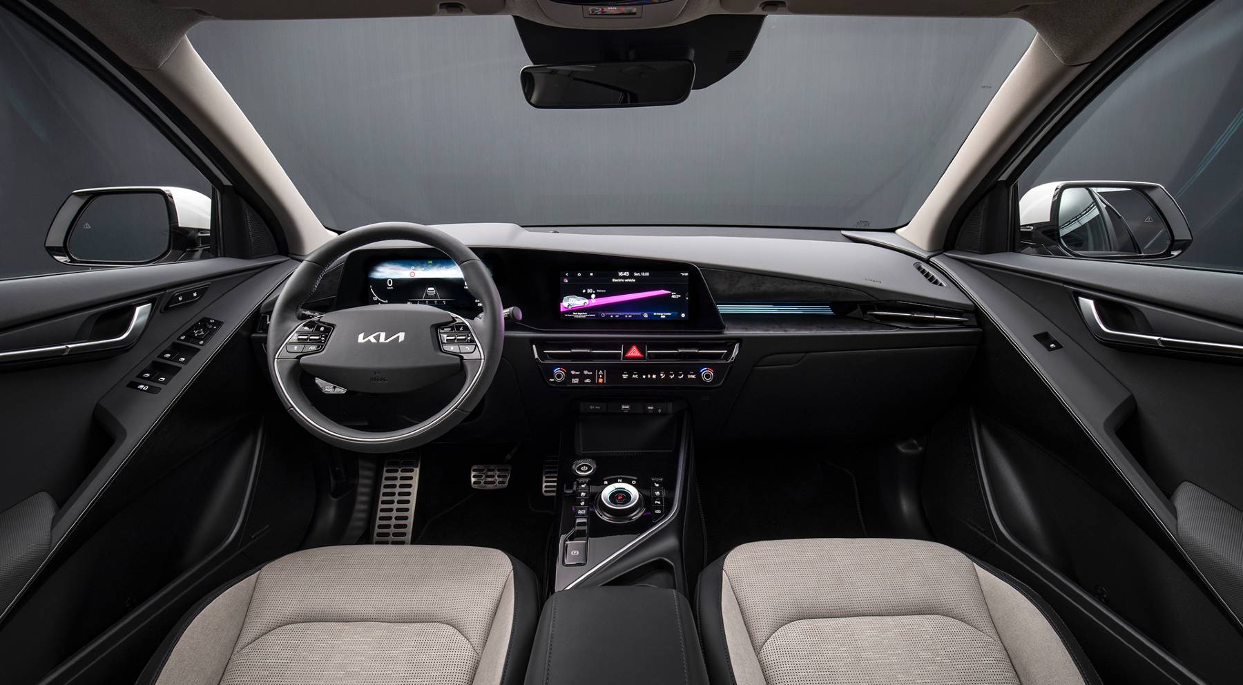 Dos pantallas de 10,25 pulgadas exhiben la información del Niro y la navegación, mientras que desde la pantalla táctil se controla el infoentretenimiento y demás sistemas como la calefacción. Además, el conductor disfruta de un sistema de visualización frontal (head-up display) de 25 centímetros que proyecta en el parabrisas la velocidad, los datos de los sistemas de ayudas a la conducción (ADAS) y los comandos de navegación.
