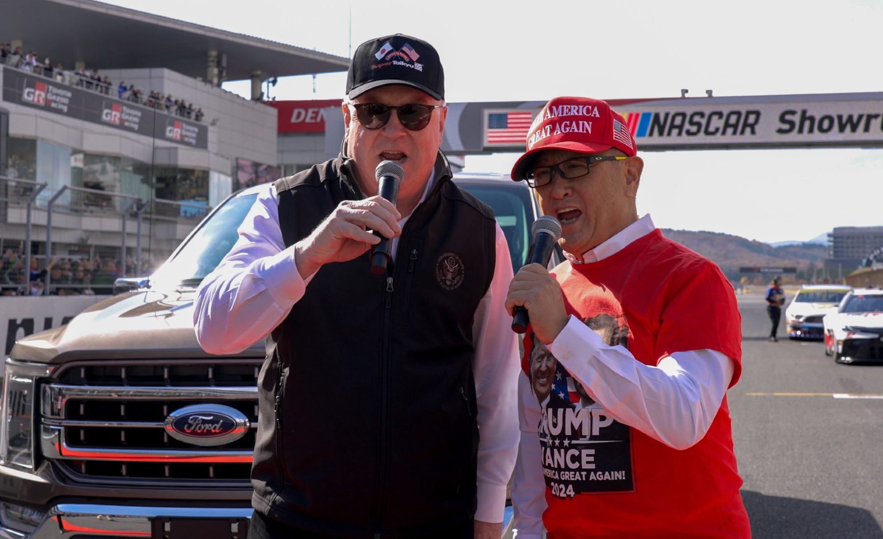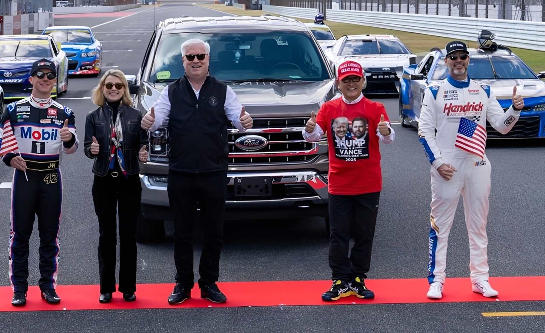 En un evento de la Nascar celebrado el pasado fin de semana en el circuito Fuji Speedway, organizado por la Asociación Japonesa de Negocios y Cultura Automovilística, que él mismo dirige, el ejecutivo se presentó con una gorra roja de “Make America Great Again” (MAGA) y una camiseta de la última campaña presidencial con los rostros de Trump y Vance.