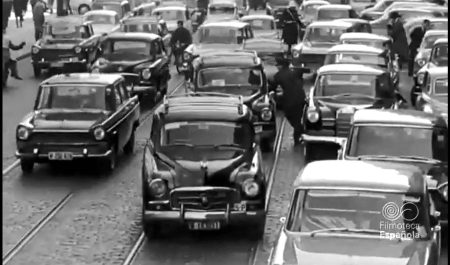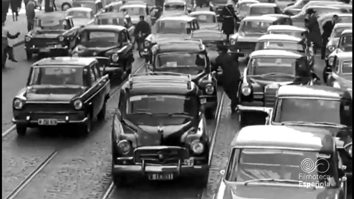 A mediados de la década de 1950, había aproximadamente 80.000 coches circulando por las carreteras de España. Diez años después, el número de vehículos se había duplicado, esto implicó que muchas ciudades no estuvieran preparadas para acoger este medio de locomoción. La capital de España fue de las más afectadas. Este video de Filmoteca Española, fechado el 2 de septiembre de 1963, deja buena constancia de ello.