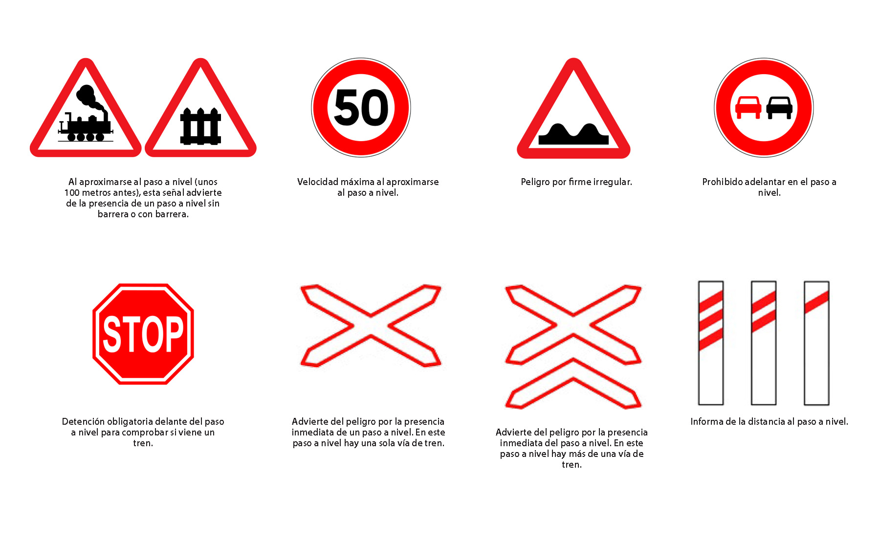 Se sitúan en los laterales de la carretera, camino o paso habilitado para peatones. Estas señales avisan de la proximidad del paso a nivel: