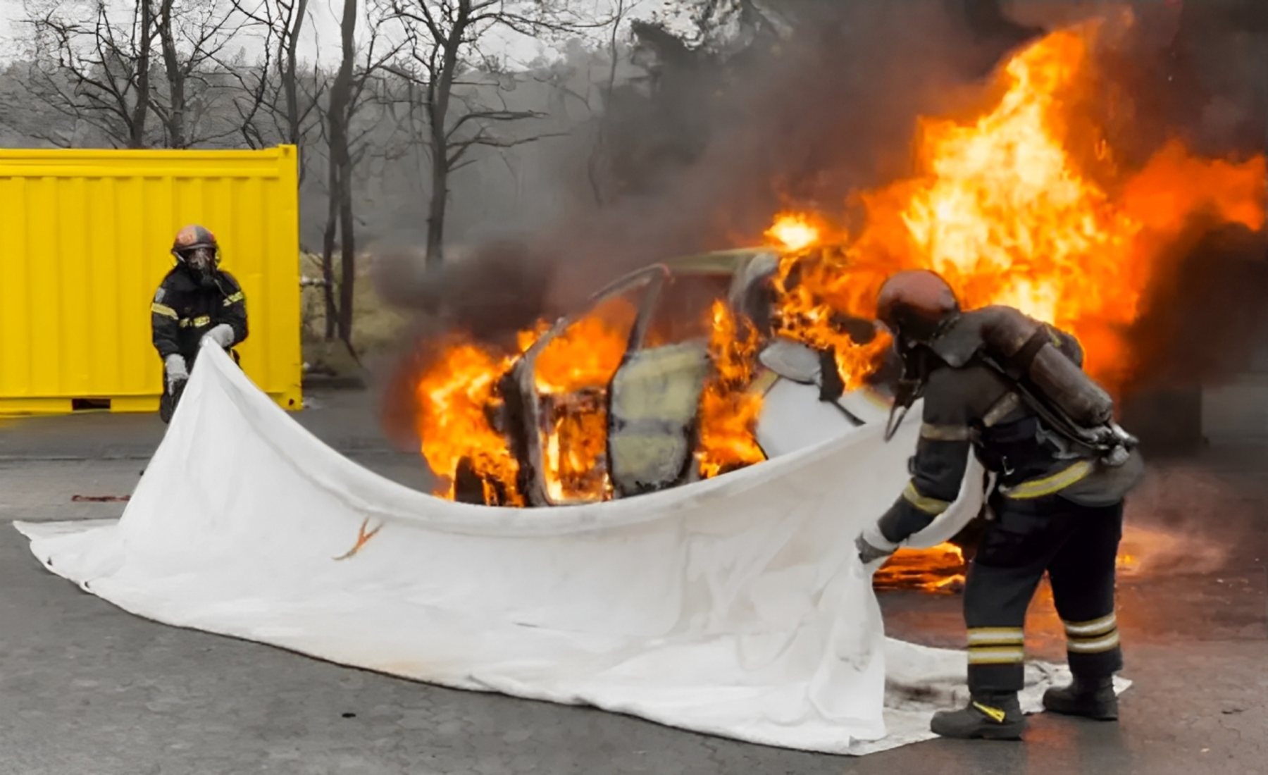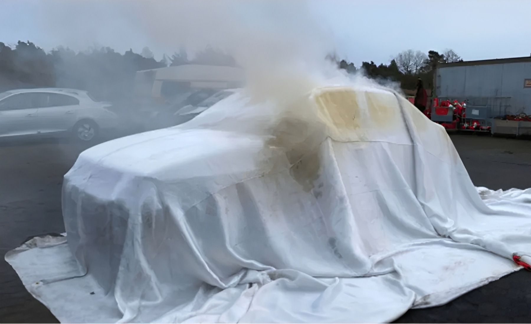 Se colocan sobre el vehículo en llamas para sofocar el fuego al privarlo de oxígeno y contener los gases tóxicos. Aunque no extinguen completamente el incendio de la batería, ayudan a prevenir su propagación a vehículos cercanos o estructuras, dando tiempo a los equipos de emergencia para actuar de forma más segura.